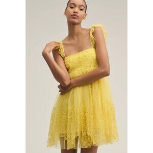 Let Me Be Eyelet Yellow Tulle Mini Dress L