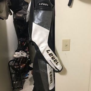 Full leather motorcycle racing suit with zipper size XL Made in Pakistan. Fully padded. In good condition. Was worn once for racing in Italy when I bought it and Ive worn it a few times riding on the road, not on the track. The knee guards are a bit worn down but theres plenty left on it for it to still be effective on the track. Mesh inside. Provides excellent protection from the wind although you may want to wear something warm underneath if your riding in cooler weather. Original price I was told was $900. Selling cause I need the money more then the suit. $300 obo. Thanks for looking.