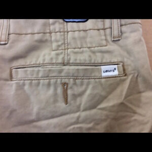 Levi’s Mens tan colored jeans in good condition with no major damage. Size 34x34, but due to shrinkage size may vary - see pics. Measured 35in waist, 33in inseam. 100% cotton.