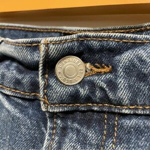 Stylish Levi Strauss jeans with classic button detail that have been turned into jorts - jean shorts. Perfect for casual wear. 7 inch inseam provides extra coverage.
