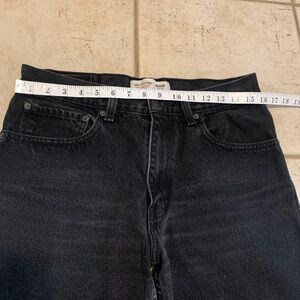 Great pair of classic Levi Strauss Signature Relaxed Fit jeans in a versatile black wash. These are 100% cotton denim, perfect for everyday wear. The relaxed fit provides comfort and a classic look.