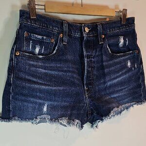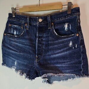 Levi's 501 Blue Distressed Denim Button Fly 32" Waist Jean Shorts