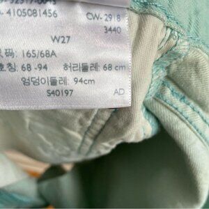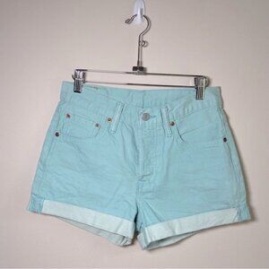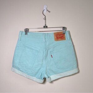Levi's 501 Cuffed Shorts 100% Cotton High Rise Pale Aquamarine Size 27