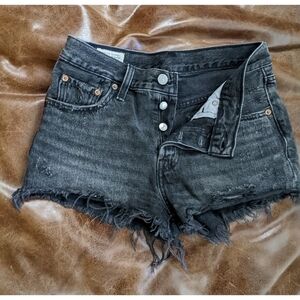 Levi's 501 Cutoff Denim Shorts Size 25 - Mid Rise - Black Distressed Frayed Hem