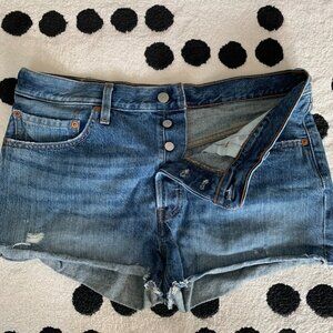 Levi’s 501 Distressed Denim Frayed Raw Hem High Rise Jean Shorts