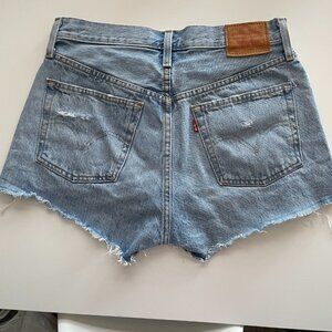Levis 501 High Rise Denim Distressed Shorts Medium Wash Blue 27 : Used and in good used condition
