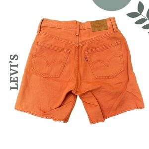 Levi’s 501 High Rise Denim Shorts Orange Raw Hem Size 24