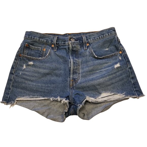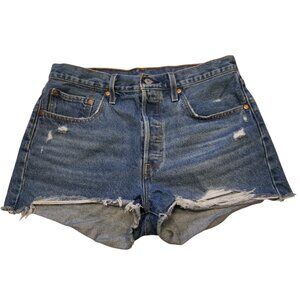 Levi's 501 High Waisted Jean Denim Shorts W31 Medium Wash Blude Faded Distressed