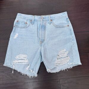 Levi’s 501 Light Blue Distressed Denim Shorts cut off boho western festival 29