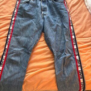 Levi's 501 Logo-Stripe Crop Straight Jeans