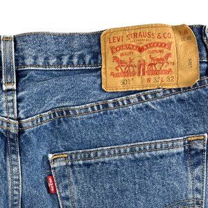 Levis 501 Original Button Fly Blue Jeans Men's 100% Cotton Straight Leg, 32/32