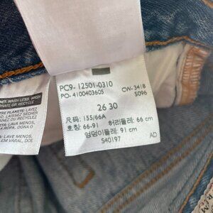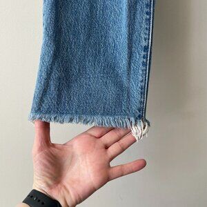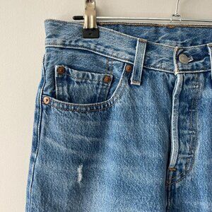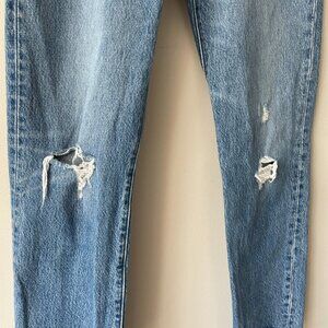 Levi's 501 Premium Icon Fit Wedgie Distressed Raw Hem Skinny Leg Jeans Blue 26