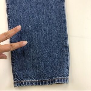 Levi’s 501 customized and tapered with buttonfly. Size 28” x 31” Mid-rise Front rise 9” Rear rise 14”