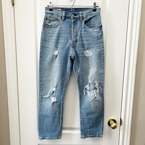 Levi’s 501 Women’s Premium Cropped Jeans Straight Leg Distressed Blue Size 26