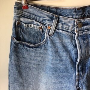 Levi’s 501 cropped jeans in color You Pretty Thing. Raw hem, distressing. Cotton