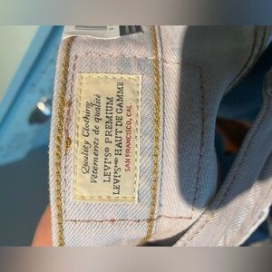 Nwt woman’s size 31 Levi’s white and pink tie dye shorts. Perfect for any upcoming festivals. High waisted. The stock photo is just to show how the shorts fit. The shorts are white with a very faint pink tie dye to them.