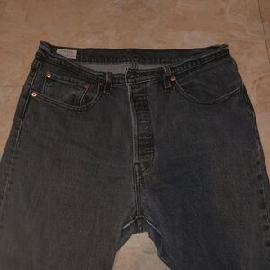Levi's 501 jeans high waist, had a tear on side, it was sewing back. waist is 17", inseam is 23.5", rise is 12".
