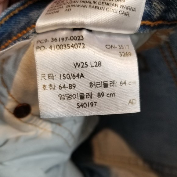 Classic Levi's 501 jeans with shredded holes and a faded wash. 5-pocket styling. Button fly.