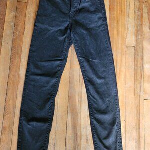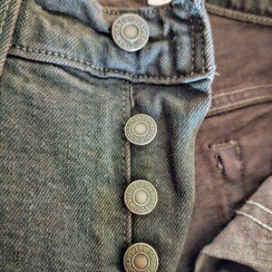Original riveted 501 washed black Levi's jeans with a raw hem. Size 25. Excellent Condition/Like New! Straight yet on the skinnier side.
