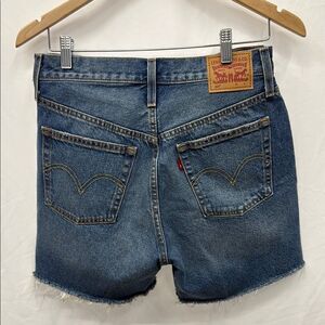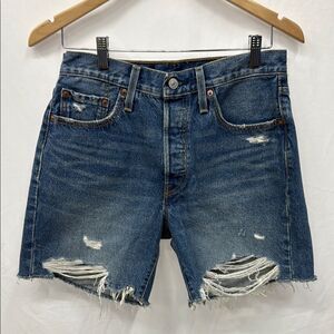 Stylish distressed denim shorts with a classic blue wash. Perfect for casual wear.