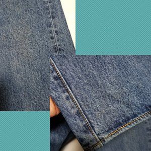 There are faint stains on multiple spots on the jeans - see pics. Light wear on the hems.