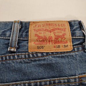 Levis 505 Jeans Mens 38x34 Heavy Blue Denim Regular Fit Straight Leg Classic