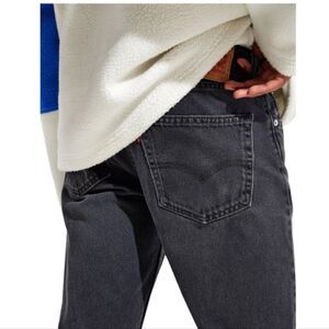 Classic straight leg Levi's jeans in rigid washed black denim.