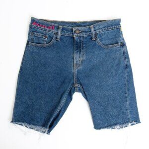 Levis 511 Shorts Blue Denim Pride Rainbow Stonewall Raw Hem Embroidered Size 30