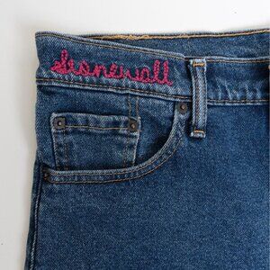 Levis 511 Shorts Stonewall with embroidered rainbow detail on the back, great for Pride, LGBTQ+ ally ship, or anyone wanting unique, denim shorts.