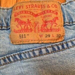 Levi’s 511 Slim Fit Light Wash Distressed Red Tab Mid-Rise Jeans Unisex 29W 32L