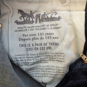 Levi's® 511™ Slim: streamlined fit that's not too skinny and not too loose. Slim in the thigh and straight throughout. Sit just below the waist and cut slim from the hip down to the ankle. Zipper fly. Excellent condition, no signs of wear, from a SFPF home. Dark blue denim with pale yellow stitching. 511s are popular classic!