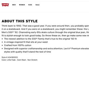 Levis 550 92' Relaxed Denim with Taper below the knee
