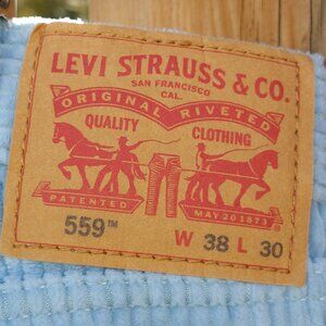 Levis 559 Men’s Size 38 x 30 Premium Wide Leg Soft Corduroy Pants Baby Blue