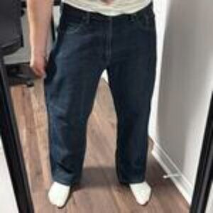 Levi’s 559 navy blue denim jeans, relaxed and baggy fit. Size 36x30. Excellent condition with no flaws. Classic style and comfortable fit.