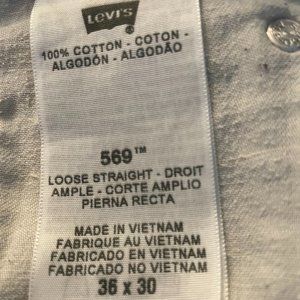 Levi's 569 Jeans. Loose fit. Straight leg. 100% cotton Size 36 Leg 30. Very good pre owned condition. No holes.