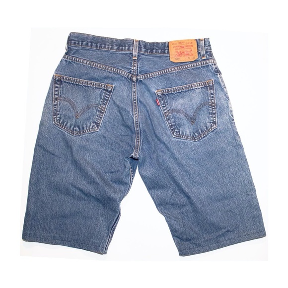 Levis 569 Medium Wash 90βs Denim Hemmed Unisex Shorts Loose Straight Red Tab