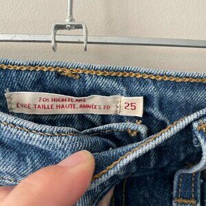 Levi's 70s High Rise Flare Leg Ripped Denim Dark Wash Casual Jeans Blue 25 : Used and in good used condition