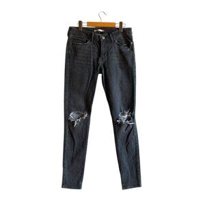 Levi’s 711 Skinny Black Ripped Denim Jeans 28 Distressed