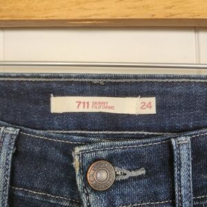 Levis 711 Skinny Jeans Dark Wash Square Pockets Stretchy Mid Rise Womens Size 24