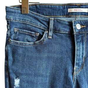 Levi’s 711 Skinny Jeans Sz 28 Distressed with Holes at Knees Classic Blue Wash