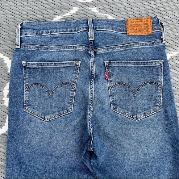 Levi’s 720 High Rise Super Skinny. Distressed raw frayed hem medium wash