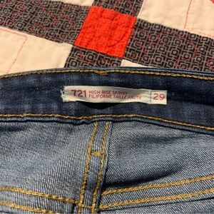 Deep blue wash, some minor pulling between thighs, but otherwise in great condition (Price reflects). Denim is semi-stretchy