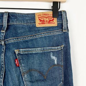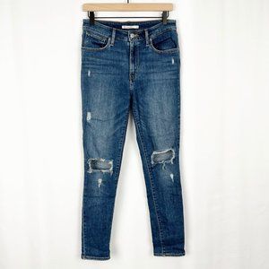 Levi's 721 High Rise Skinny Distressed Ripped Knee Slim Ankle Denim Jeans - 30