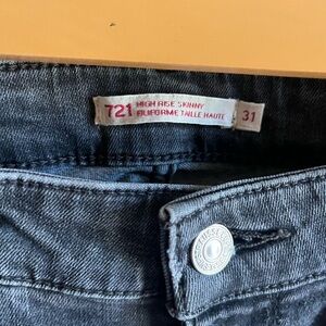 Levi’s 721 High Rise Skinny Jeans True Grit Soft Black Size 31 Premium Denim