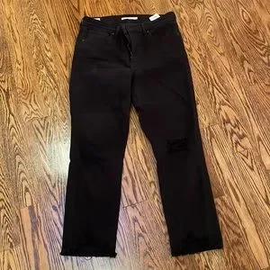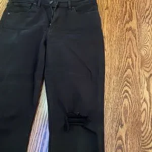 Premium Levi’s. Super soft brushed black with stretch, raw hem and 1 ripped knee (part of the style, came that way). Barely worn! Comes from a smoke and pet free home and top seller!