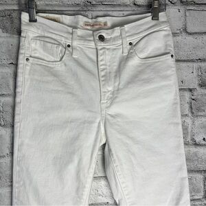 Levi’s 724 High Rise Straight Crop Distressed White Denim Raw Hem Jeans