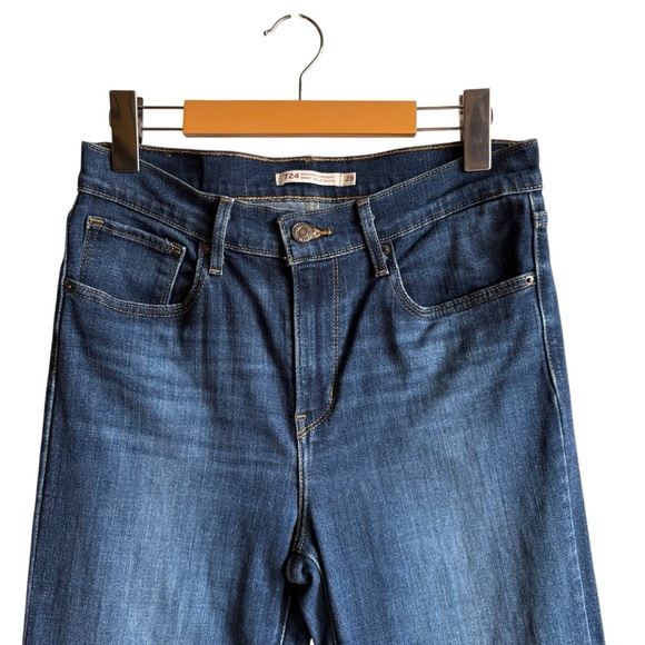 Levi's 724 High Rise Straight Leg Jeans Size 28 Dark Blue Denim