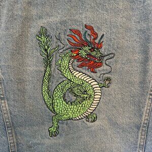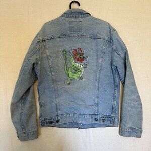 Levis 80’s Vintage 75504-0212 Denim Trucker Jacket Size Large Dragon Embroidery