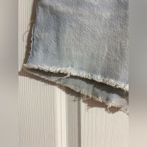 -Pre-worn denim featuring a raw cut-off hem