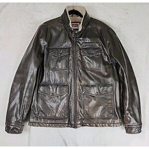 Levi's Aviator Bomber Jacket Men's Size Large Brown Faux Leather Sherpa Lined